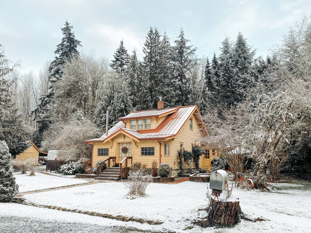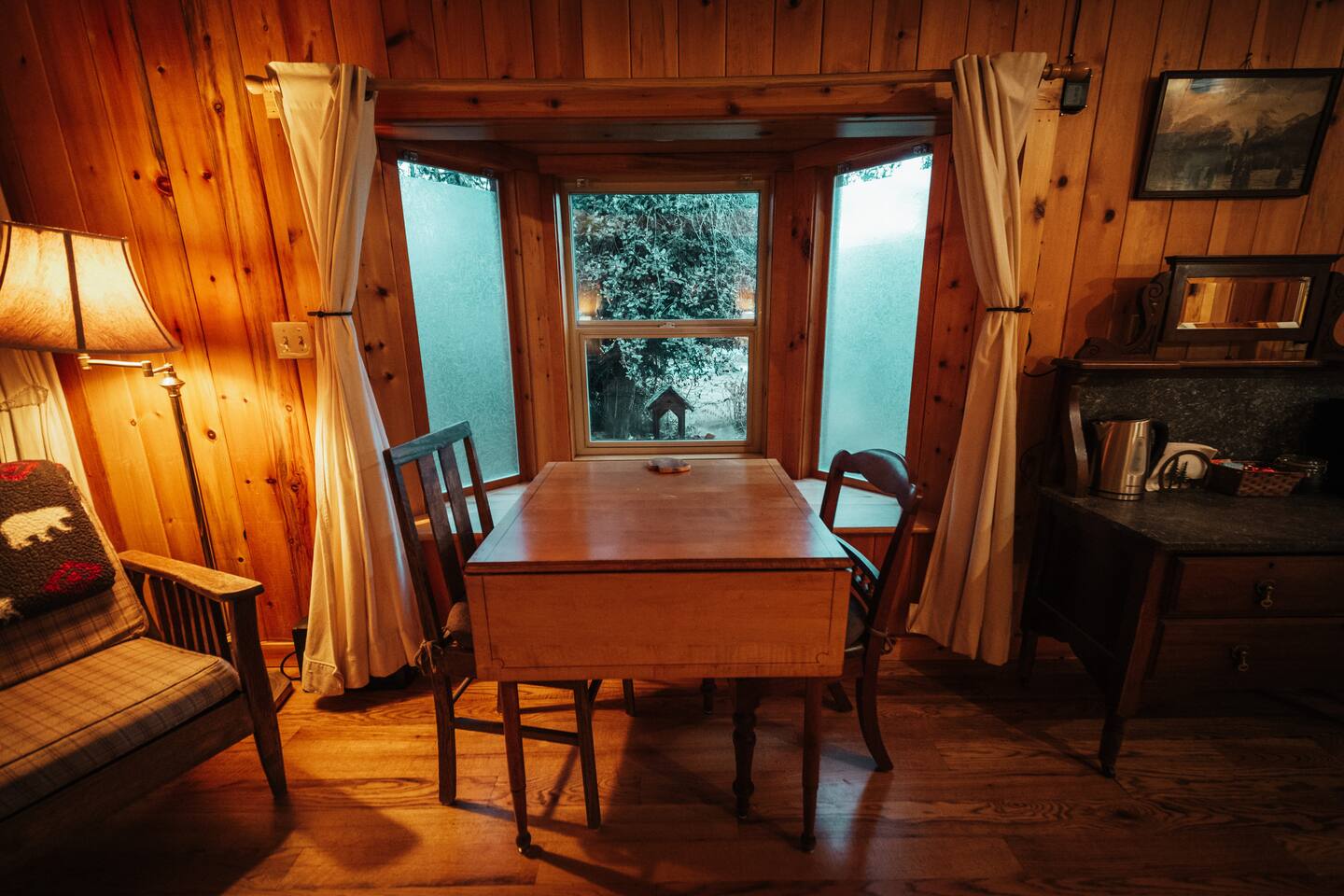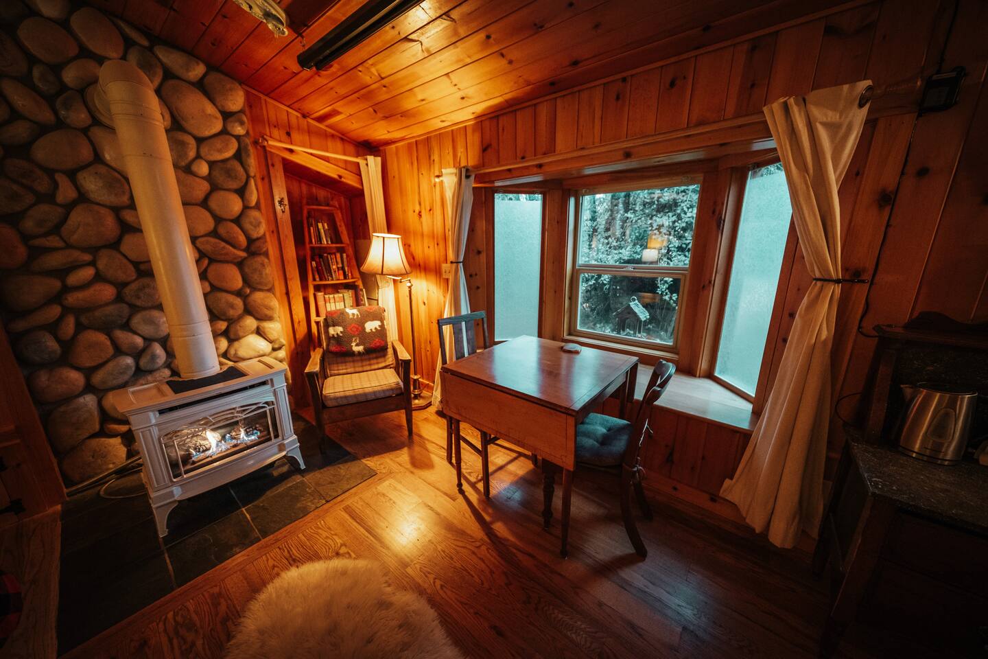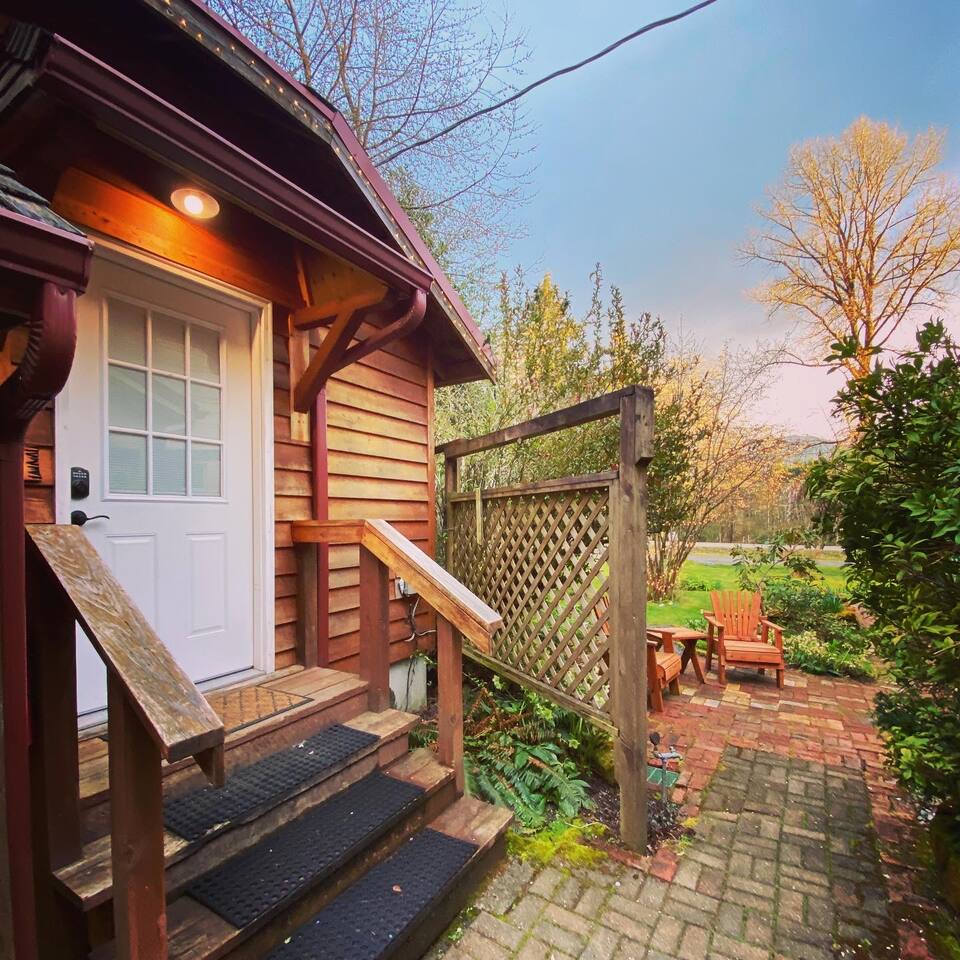Emmons Cabin Suite has everything you need for a Mount Rainier getaway! Whether you're looking for an adventure basecamp or a cozy place to relax, we have you covered. The "Ashford Lodge" is an old bed and breakfast that we bought and renovated in 2021, turning it into a fun mountain retreat! There is a big main house, guest house, and vintage trailer "glampground", with a shared hot tub, BBQ gazebo, and gardens. The Emmons Suite is the largest suite in our guest house, which has two other cabin suites. Each room has it's own private entrance, and there is a double layer of heavy insulation in the walls to keep noise down to a minimum. This cozy room has everything you need for a comfortable stay neat Mt. Rainier National Park. The queen-size bed has flannel sheets and a pillow-top mattress to help you sleep like a baby, and there is a whisper-quiet AC unit to keep you at a comfortable temperature all night long. The gas fireplace provides warmth and ambience; grab a book, game, or puzzle off the bookshelf and relax by the warmth of the fire! Best of all, you can watch movies from bed on the huge 100" projector! The smart projector is stocked with all the major streaming apps, and we supply a complimentary subscription to both Netflix and Amazon Prime Video! Bring the popcorn and cozy up for an epic movie night! The room also features a vintage kitchenette with basic cooking needs: Hot plate and electric skillet, coffee maker with fresh ground coffee from local roaster Campfire Coffee Company, sugar, creamer, and tea, as well as a microwave and mini-fridge. There are also mugs, glasses, bowls, silverware, napkins, and a wine/bottle opener. The bathroom features a shower stocked with top-quality Beekman 1802 shampoo, conditioner, and bodywash. Towels, washcloths, and hairdryer will be ready and waiting for you. Outside the room, you'll have access to the shared hot tub, tucked back in a private space in our garden away from all the rooms. It's located in a gazebo, so you can enjoy it even when it's raining! The hot tub is shared with guests in our other rooms and is first come, first served; we just ask that guests limit their hot tub time to an hour or so other guests get a chance to relax too. There is separate gazebo with gas grill and picnic table in our garden where you can grill up some post-hike burgers, and a hammock so you can relax in the sunshine! Our property also backs right up to Ashford County Park, which features a small network of paved trails that meander through beautiful woods! Follow our small gravel trail (look for the gravel going into the woods between the hot tub and vintage travel trailer) to connect up with the main park trail, and enjoy and nice evening stroll!