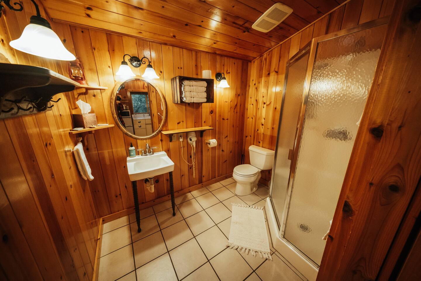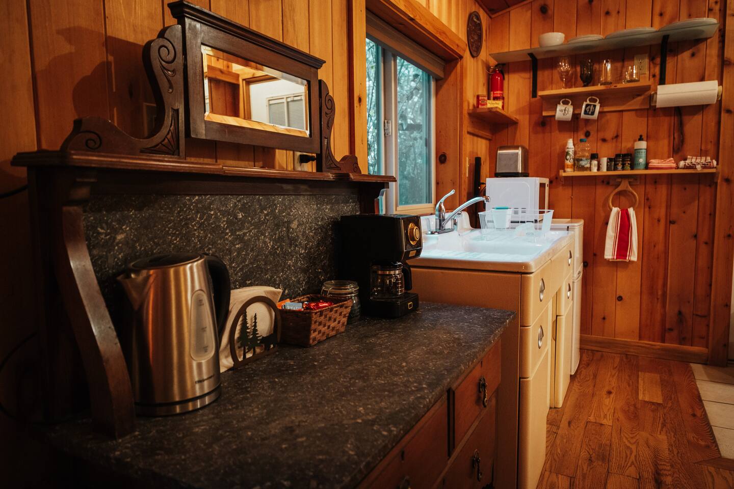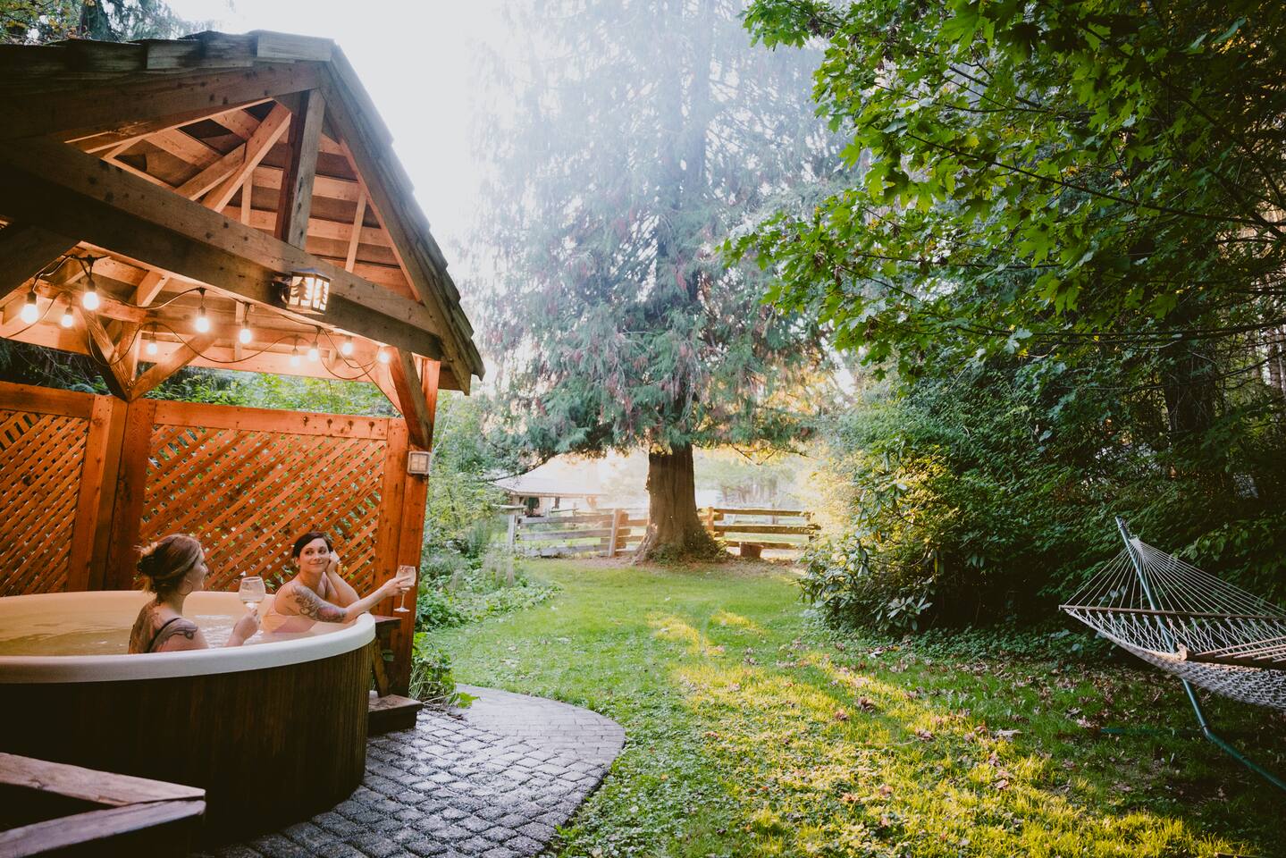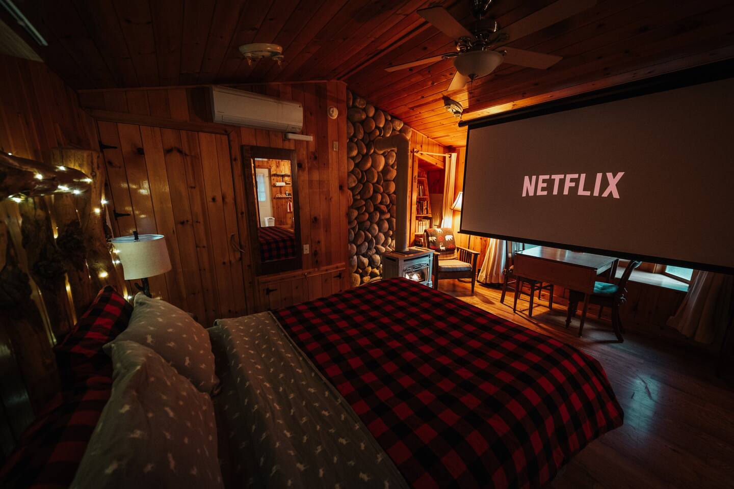 Emmons Cabin Suite has everything you need for a Mount Rainier getaway! Whether you're looking for an adventure basecamp or a cozy place to relax, we have you covered. The "Ashford Lodge" is an old bed and breakfast that we bought and renovated in 2021, turning it into a fun mountain retreat! There is a big main house, guest house, and vintage trailer "glampground", with a shared hot tub, BBQ gazebo, and gardens. The Emmons Suite is the largest suite in our guest house, which has two other cabin suites. Each room has it's own private entrance, and there is a double layer of heavy insulation in the walls to keep noise down to a minimum. This cozy room has everything you need for a comfortable stay neat Mt. Rainier National Park. The queen-size bed has flannel sheets and a pillow-top mattress to help you sleep like a baby, and there is a whisper-quiet AC unit to keep you at a comfortable temperature all night long. The gas fireplace provides warmth and ambience; grab a book, game, or puzzle off the bookshelf and relax by the warmth of the fire! Best of all, you can watch movies from bed on the huge 100" projector! The smart projector is stocked with all the major streaming apps, and we supply a complimentary subscription to both Netflix and Amazon Prime Video! Bring the popcorn and cozy up for an epic movie night! The room also features a vintage kitchenette with basic cooking needs: Hot plate and electric skillet, coffee maker with fresh ground coffee from local roaster Campfire Coffee Company, sugar, creamer, and tea, as well as a microwave and mini-fridge. There are also mugs, glasses, bowls, silverware, napkins, and a wine/bottle opener. The bathroom features a shower stocked with top-quality Beekman 1802 shampoo, conditioner, and bodywash. Towels, washcloths, and hairdryer will be ready and waiting for you. Outside the room, you'll have access to the shared hot tub, tucked back in a private space in our garden away from all the rooms. It's located in a gazebo, so you can enjoy it even when it's raining! The hot tub is shared with guests in our other rooms and is first come, first served; we just ask that guests limit their hot tub time to an hour or so other guests get a chance to relax too. There is separate gazebo with gas grill and picnic table in our garden where you can grill up some post-hike burgers, and a hammock so you can relax in the sunshine! Our property also backs right up to Ashford County Park, which features a small network of paved trails that meander through beautiful woods! Follow our small gravel trail (look for the gravel going into the woods between the hot tub and vintage travel trailer) to connect up with the main park trail, and enjoy and nice evening stroll!