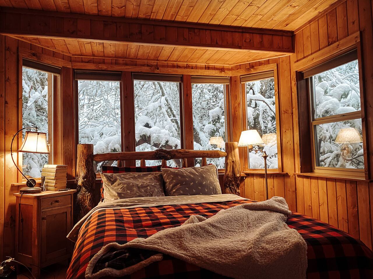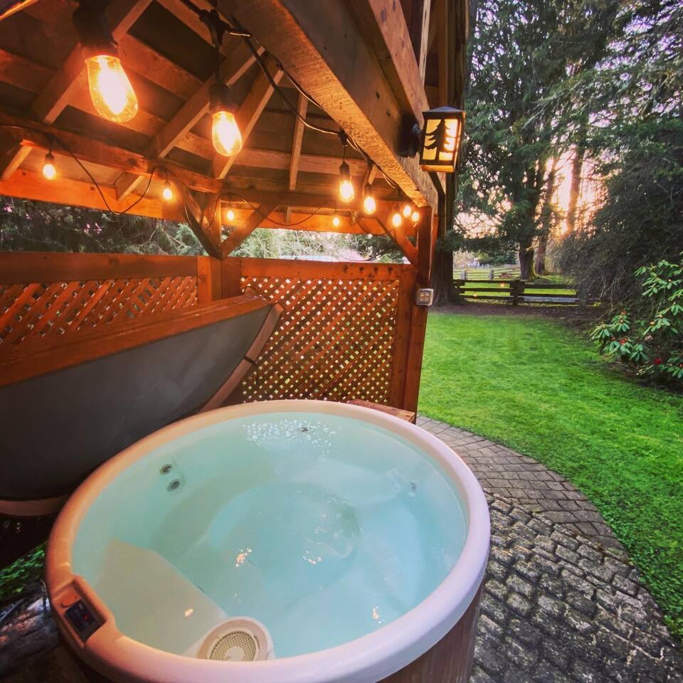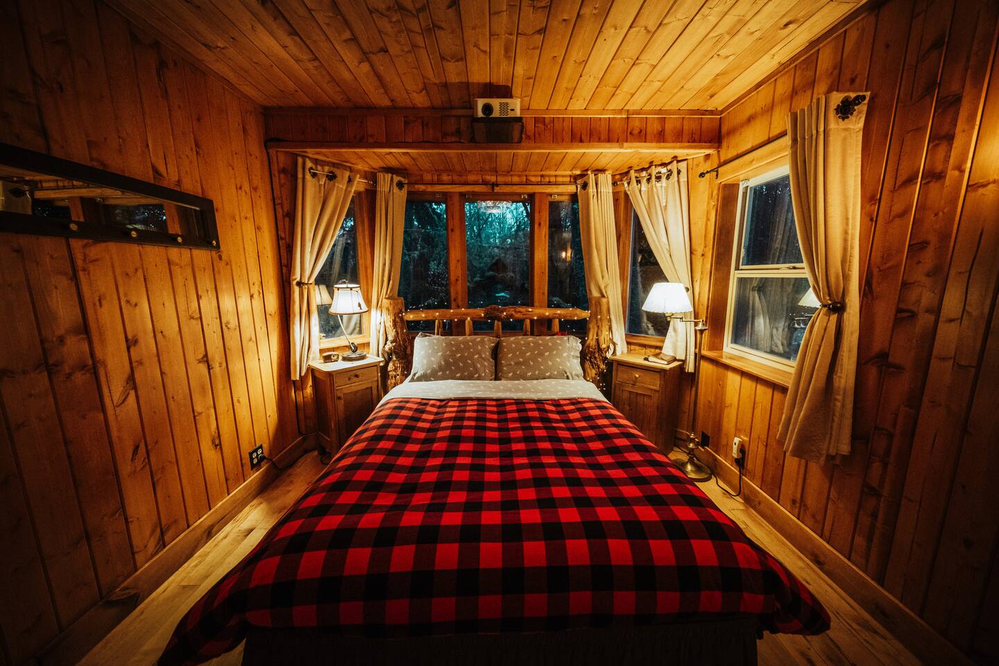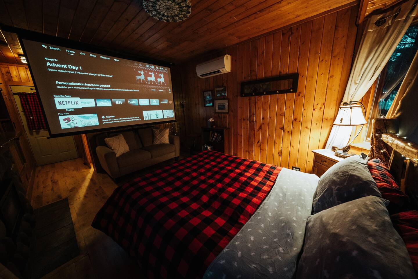 Nisqually Cabin Suite has everything you need for a Mount Rainier getaway! Whether you're looking for an adventure basecamp or a cozy place to relax, we have you covered. The "Ashford Lodge" is an old bed and breakfast that we bought and renovated in 2021, turning it into a fun mountain retreat! There is a big main house, guest house, and vintage trailer "glampground", with a shared hot tub, BBQ gazebo, and gardens. The Nisqually Suite is located in our guest house, which has two other cabin suites. Each room has it's own private entrance, and there is a double layer of heavy insulation in the walls to keep noise down to a minimum. Nisqually Suite is our most popular room for a reason... The big bay windows look out into lush greenery right above your cozy queen-sized bed, and the big river rock fireplace keeps you warm in its rustic glow on chilly nights. Make yourself a hot cocoa in the kitchenette, curl up with a good book in front of the fire, and watch the birds in the trees outside... Nisqually is the place to relax. And if you're up for a movie night, you can watch movies from bed on the huge 100" projector! The smart projector is stocked with all the major streaming apps, and we supply a complimentary subscription to both Netflix and Amazon Prime Video. Bring the popcorn and cozy up for an epic movie night! The room also features a small kitchenette stocked with the basics: coffee maker with fresh ground coffee from local roaster Campfire Coffee Company, sugar, creamer, tea, cocoa, and cider, as well as electric water kettle, a microwave and mini-fridge. There are also mugs, glasses, bowls, silverware, napkins, and a wine/bottle opener. The bathroom features a shower stocked with top-quality Beekman 1802 shampoo, conditioner, and bodywash. Towels, washcloths, and hairdryer will be ready and waiting for you. Outside the room, you'll have access to the shared hot tub, tucked back in a private space in our garden away from all the rooms. It's located in a gazebo, so you can enjoy it even when it's raining! The hot tub is shared with guests in our other rooms and is first come, first served; we just ask that guests limit their hot tub time to an hour or so other guests get a chance to relax too. There is separate gazebo with gas grill and picnic table in our garden where you can grill up some post-hike burgers, and a hammock so you can relax in the sunshine! Our property also backs right up to Ashford County Park, which features a small network of paved trails that meander through beautiful woods! Follow our small gravel trail (look for the gravel going into the woods between the hot tub and vintage travel trailer) to connect up with the main park trail, and enjoy and nice evening stroll!