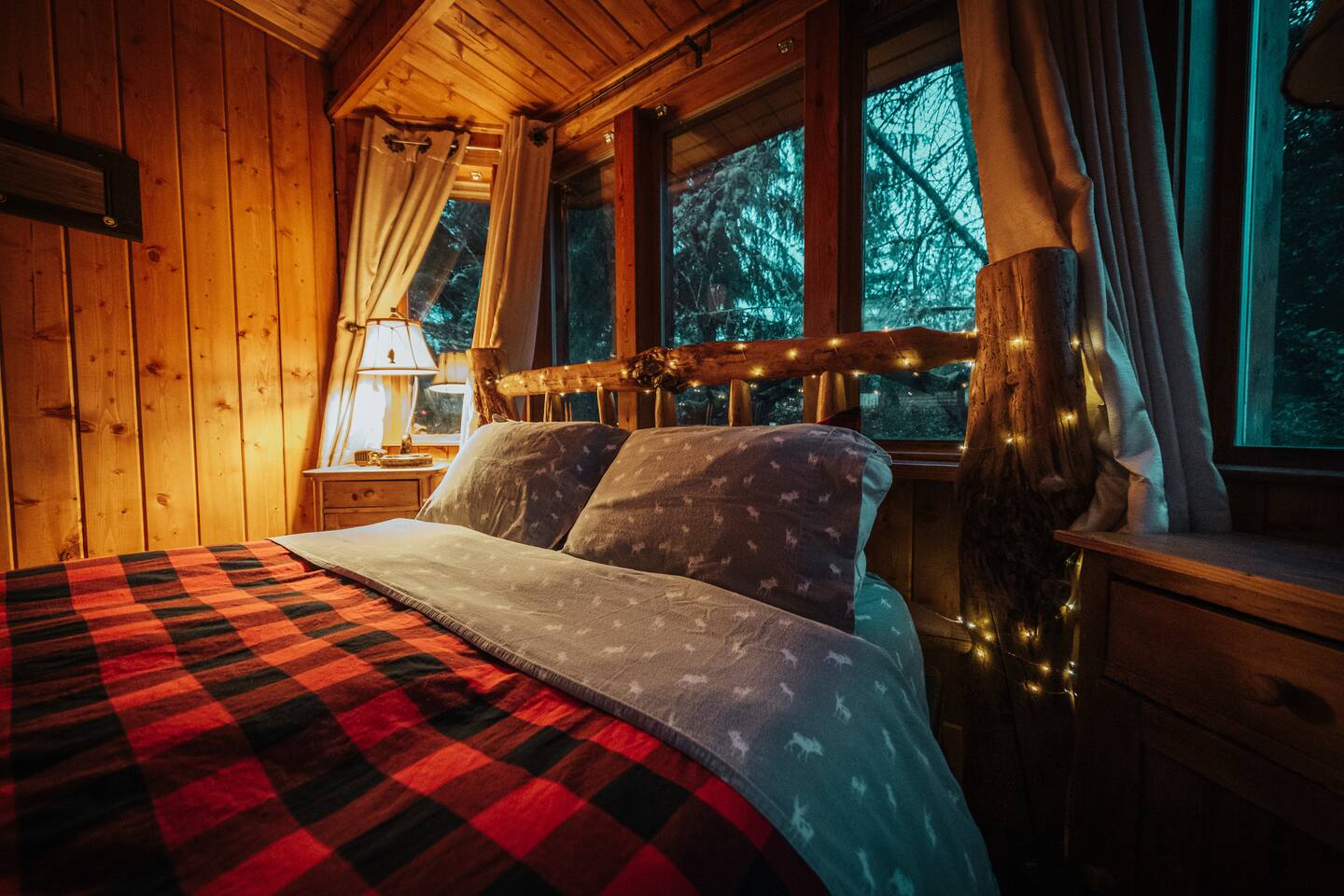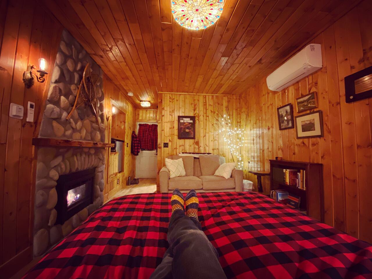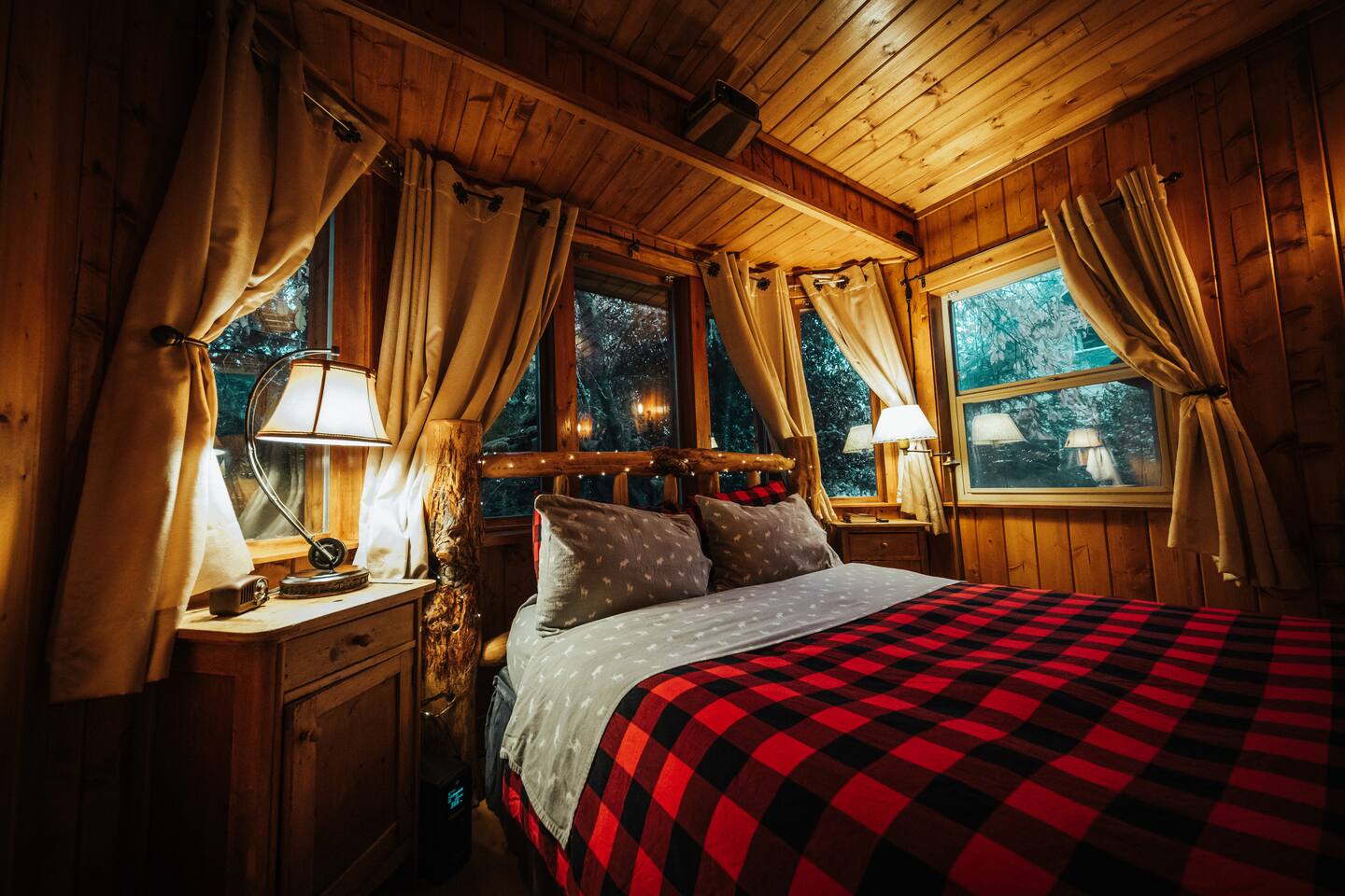 Nisqually Cabin Suite has everything you need for a Mount Rainier getaway! Whether you're looking for an adventure basecamp or a cozy place to relax, we have you covered. The "Ashford Lodge" is an old bed and breakfast that we bought and renovated in 2021, turning it into a fun mountain retreat! There is a big main house, guest house, and vintage trailer "glampground", with a shared hot tub, BBQ gazebo, and gardens. The Nisqually Suite is located in our guest house, which has two other cabin suites. Each room has it's own private entrance, and there is a double layer of heavy insulation in the walls to keep noise down to a minimum. Nisqually Suite is our most popular room for a reason... The big bay windows look out into lush greenery right above your cozy queen-sized bed, and the big river rock fireplace keeps you warm in its rustic glow on chilly nights. Make yourself a hot cocoa in the kitchenette, curl up with a good book in front of the fire, and watch the birds in the trees outside... Nisqually is the place to relax. And if you're up for a movie night, you can watch movies from bed on the huge 100" projector! The smart projector is stocked with all the major streaming apps, and we supply a complimentary subscription to both Netflix and Amazon Prime Video. Bring the popcorn and cozy up for an epic movie night! The room also features a small kitchenette stocked with the basics: coffee maker with fresh ground coffee from local roaster Campfire Coffee Company, sugar, creamer, tea, cocoa, and cider, as well as electric water kettle, a microwave and mini-fridge. There are also mugs, glasses, bowls, silverware, napkins, and a wine/bottle opener. The bathroom features a shower stocked with top-quality Beekman 1802 shampoo, conditioner, and bodywash. Towels, washcloths, and hairdryer will be ready and waiting for you. Outside the room, you'll have access to the shared hot tub, tucked back in a private space in our garden away from all the rooms. It's located in a gazebo, so you can enjoy it even when it's raining! The hot tub is shared with guests in our other rooms and is first come, first served; we just ask that guests limit their hot tub time to an hour or so other guests get a chance to relax too. There is separate gazebo with gas grill and picnic table in our garden where you can grill up some post-hike burgers, and a hammock so you can relax in the sunshine! Our property also backs right up to Ashford County Park, which features a small network of paved trails that meander through beautiful woods! Follow our small gravel trail (look for the gravel going into the woods between the hot tub and vintage travel trailer) to connect up with the main park trail, and enjoy and nice evening stroll!