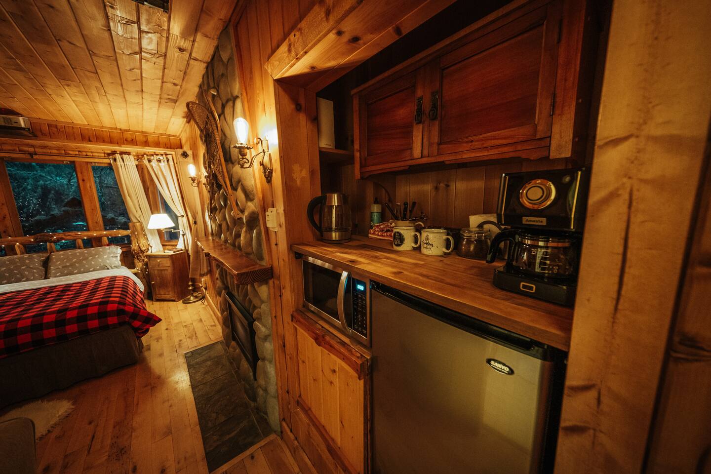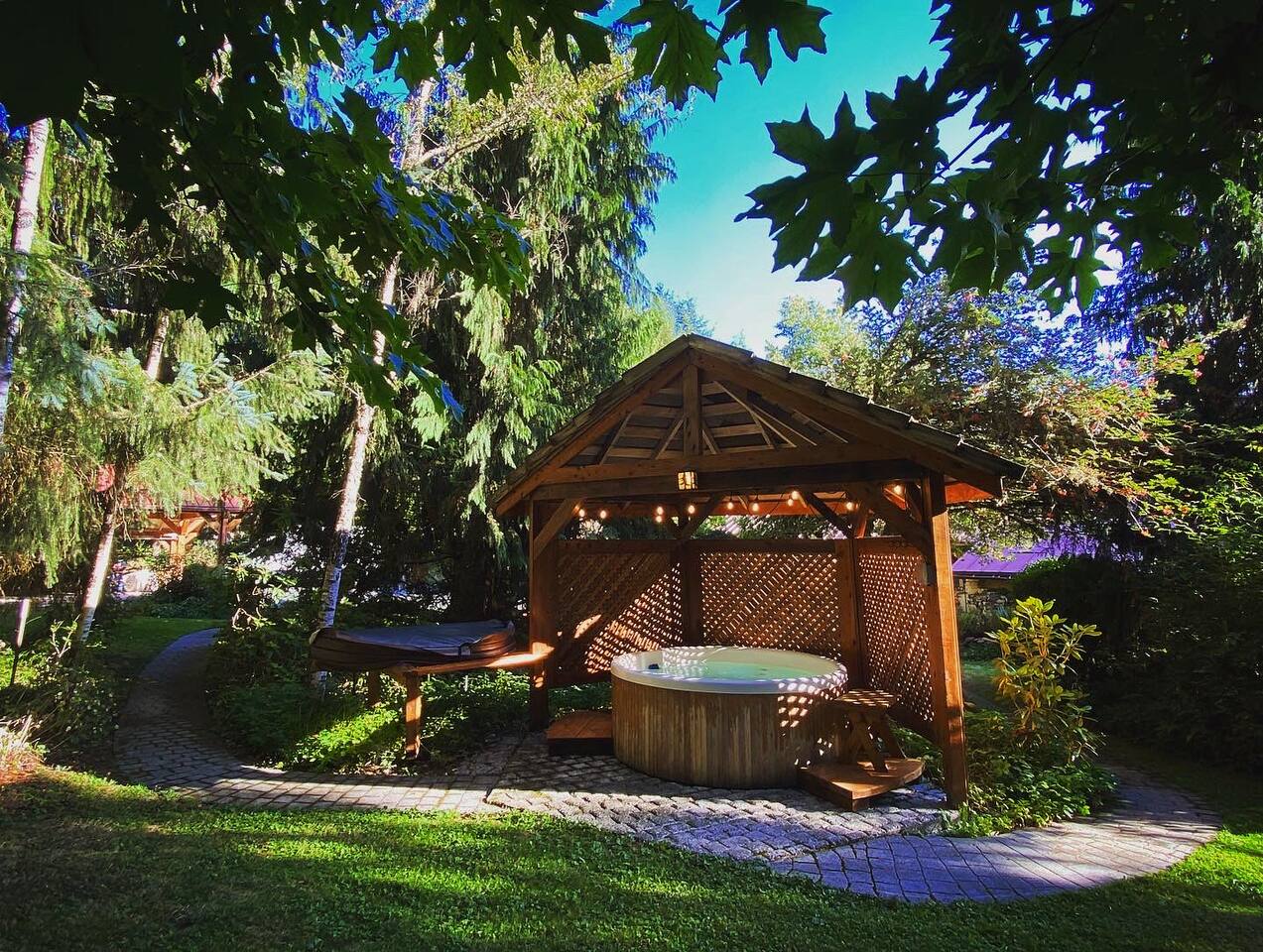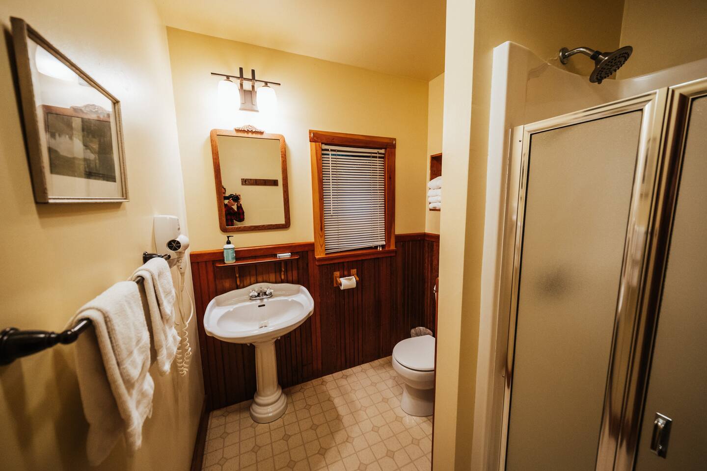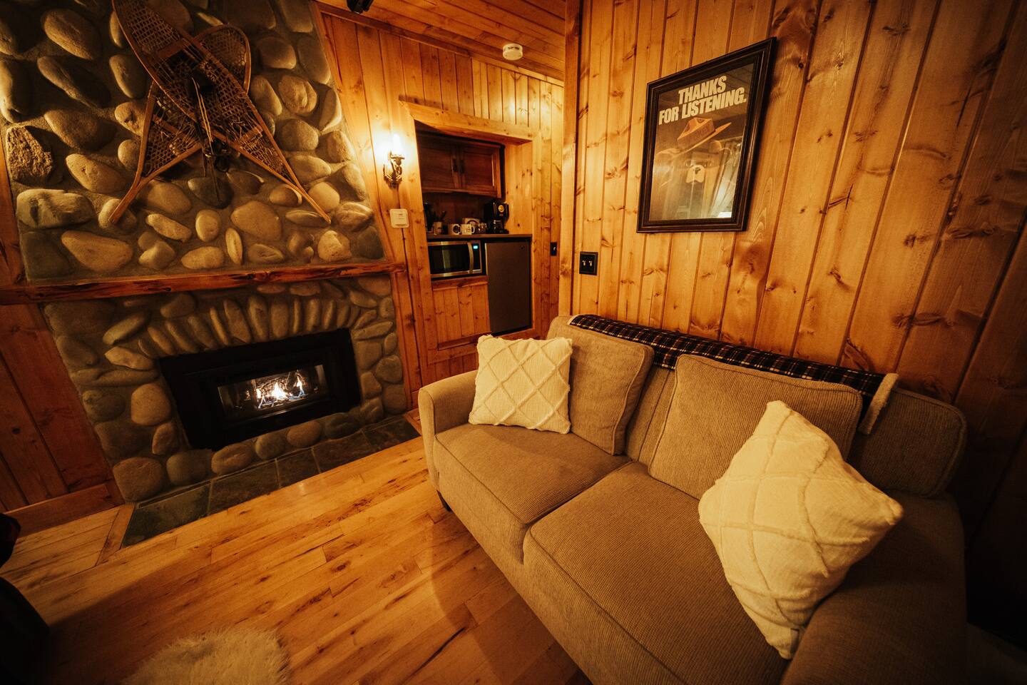 Nisqually Cabin Suite has everything you need for a Mount Rainier getaway! Whether you're looking for an adventure basecamp or a cozy place to relax, we have you covered. The "Ashford Lodge" is an old bed and breakfast that we bought and renovated in 2021, turning it into a fun mountain retreat! There is a big main house, guest house, and vintage trailer "glampground", with a shared hot tub, BBQ gazebo, and gardens. The Nisqually Suite is located in our guest house, which has two other cabin suites. Each room has it's own private entrance, and there is a double layer of heavy insulation in the walls to keep noise down to a minimum. Nisqually Suite is our most popular room for a reason... The big bay windows look out into lush greenery right above your cozy queen-sized bed, and the big river rock fireplace keeps you warm in its rustic glow on chilly nights. Make yourself a hot cocoa in the kitchenette, curl up with a good book in front of the fire, and watch the birds in the trees outside... Nisqually is the place to relax. And if you're up for a movie night, you can watch movies from bed on the huge 100" projector! The smart projector is stocked with all the major streaming apps, and we supply a complimentary subscription to both Netflix and Amazon Prime Video. Bring the popcorn and cozy up for an epic movie night! The room also features a small kitchenette stocked with the basics: coffee maker with fresh ground coffee from local roaster Campfire Coffee Company, sugar, creamer, tea, cocoa, and cider, as well as electric water kettle, a microwave and mini-fridge. There are also mugs, glasses, bowls, silverware, napkins, and a wine/bottle opener. The bathroom features a shower stocked with top-quality Beekman 1802 shampoo, conditioner, and bodywash. Towels, washcloths, and hairdryer will be ready and waiting for you. Outside the room, you'll have access to the shared hot tub, tucked back in a private space in our garden away from all the rooms. It's located in a gazebo, so you can enjoy it even when it's raining! The hot tub is shared with guests in our other rooms and is first come, first served; we just ask that guests limit their hot tub time to an hour or so other guests get a chance to relax too. There is separate gazebo with gas grill and picnic table in our garden where you can grill up some post-hike burgers, and a hammock so you can relax in the sunshine! Our property also backs right up to Ashford County Park, which features a small network of paved trails that meander through beautiful woods! Follow our small gravel trail (look for the gravel going into the woods between the hot tub and vintage travel trailer) to connect up with the main park trail, and enjoy and nice evening stroll!